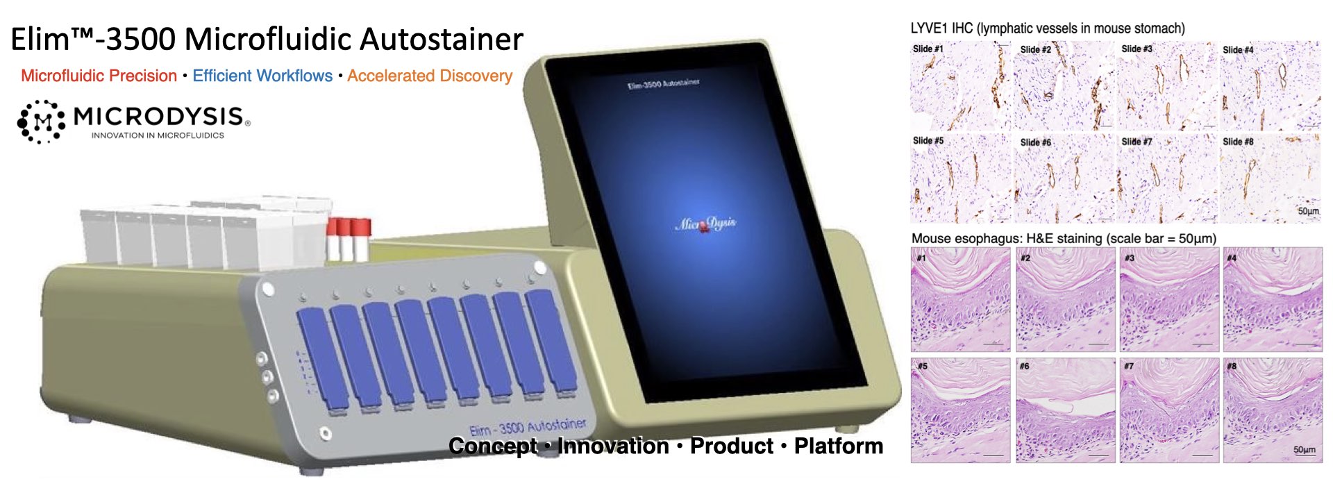Since the beginning of 2021, MicroDysis has been committed to developing a groundbreaking tissue staining platform. Through continuous refinement and four generations of prototypes, we transformed an ambitious concept into a validated instrument: the Elim™-3500 — our fourth-generation model and the pinnacle of our innovation. This sophisticated device integrates patented microfluidic control, precise temperature management, full automation, and an intuitive user interface. Engineered for reliability and flexibility, the Elim™-3500 sets a new benchmark in laboratory staining performance. It embodies years of innovation, rigorous testing, and close collaboration with research and clinical partners.