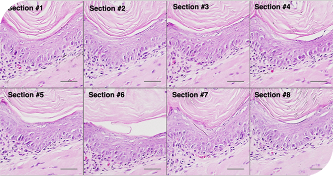 Eight sections of the mouse esophagus for H&E staining. Scale bar=50μm